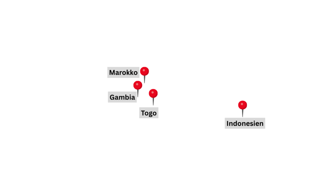👉 in Marokko, Gambia, Togo und Indonesien.